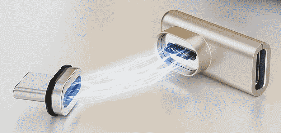 The product, which you may see here on Amazon, has a male part that fits into the USB-C port on the computer, and has a matching female part that fits onto the male end of the cable that you might have been tempted to plug into the USB-C port on the computer.  The two parts snap together with magnetism.
